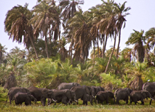 ELEPHANTS IN PALM GROVE
