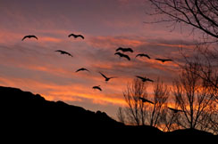CRANES APPROACHING AT DAWN